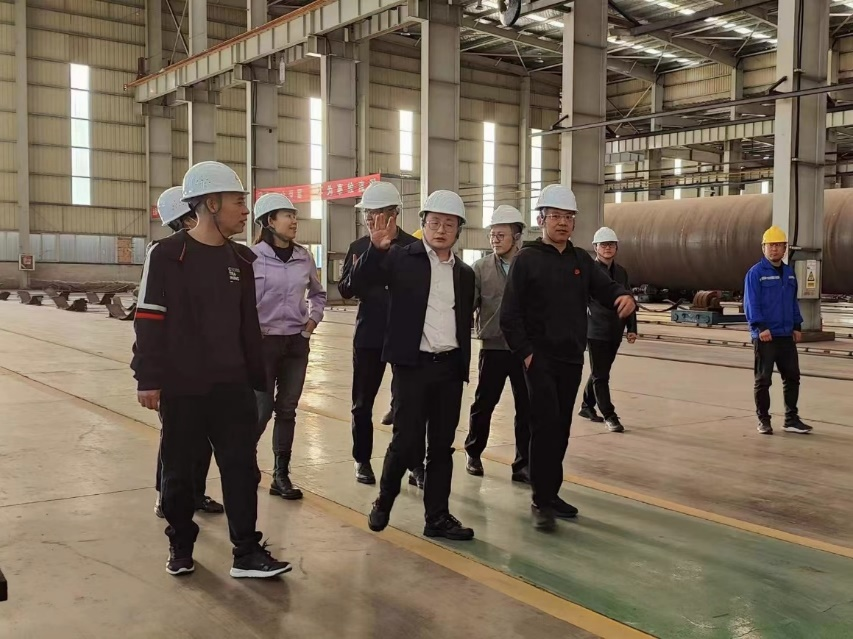调研组一行首先来到半岛web版登录入口三期塔筒生产基地实地考察,参观了塔筒生产流水线,并听取半岛web版登录入口分管领导详细汇报了塔筒的制造工艺、生产流程、安全管理和产能布局等情况。